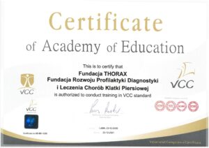 Fundacja VCC przeprowadziła kontrolę i walidację zewnętrzną Fundacji Thorax pod względem jakości prowadzonych działań edukacyjnych. Wydano certyfikat potwierdzający uzyskanie kwalifikacji VCC.